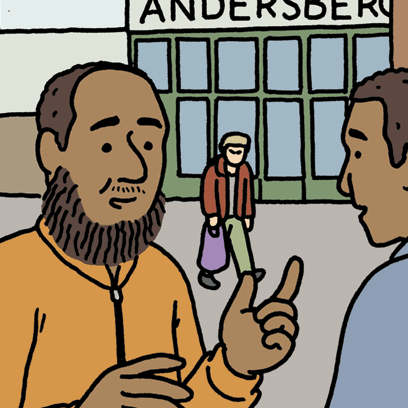 Sakta går hem genom stan
