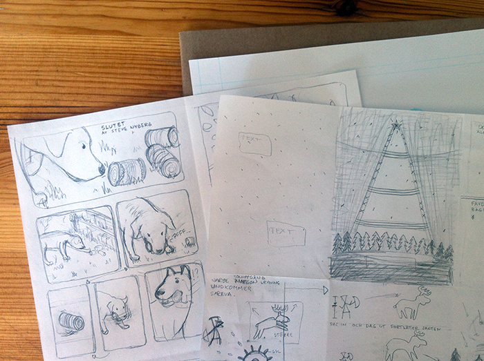 Just nu jobbar jag med två serier som ska bli klara innan arbetet med Trygga Lilla Sverige börjar på allvar om en månad. Ovan är första sidorna från skissmanus till dessa. Upptäckte nu att båda har djur i huvudrollerna. Samtidigt ritar jag lite dagbokserier till Ritualens återkommande antologi Läget. Andra numret dyker upp efter sommaren. Work, work.
