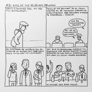 Jag såg en serie av Henri Gylander på Instagram som jag tyckte var väldigt fin och inspirerande, så jag bestämde mig för att göra en egen version. Himla kul! Jag har inte varit i ateljén på hela sommaren (har tvingat mig själv till semester sen Trygga lilla Sverige blev färdig, och senaste veckan har jag haft serieworkshop för barn – men när jag såg Henris serie så skissade jag genast ihop min egna och pinade iväg till ateljén dagen därpå. Det var en lördag så jag trodde jag skulle vara ensam där, men där satt Ylva och knotade med det sista på ett nytt bokprojekt. Snart ska jag också börja med ett nytt bokprojekt och hänga mer i ateljén. Mer om det då.
