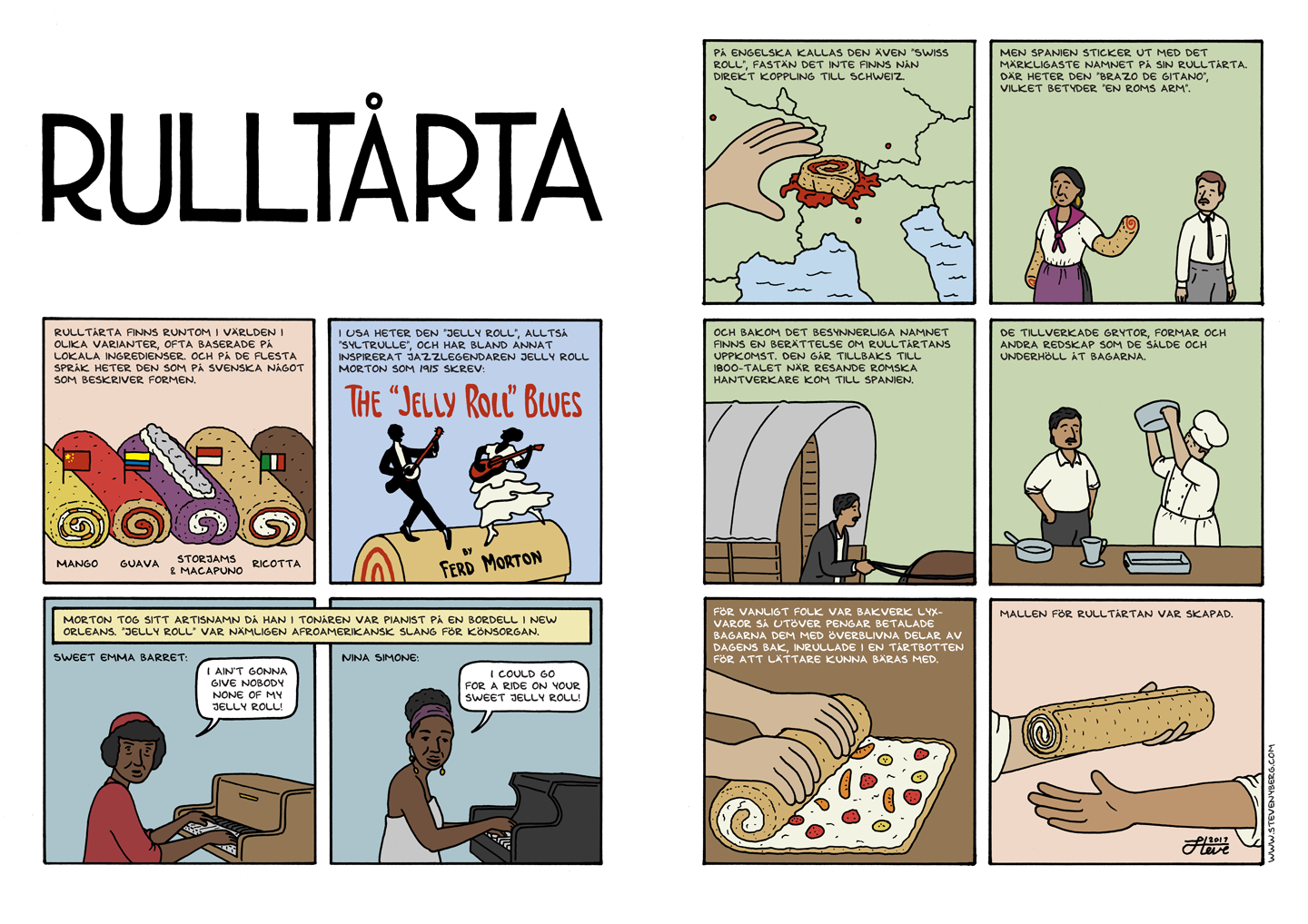 Idag är dagen! Rulltårtans dag. Jag hade tänkt göra en serie till dagen förra året men upptäckte att det var väldigt svårt att hitta någon historieskrivning om rulltårtan alls. Så i ett år nu har jag försökt hitta nya ställen att leta på och till slut hittade jag ändå en skapelsehistoria, gömd i det spanska väldigt skumma namnet på rulltårta.