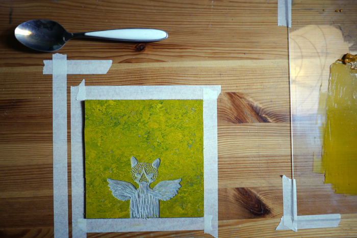 Och eftersom jag tycker screentryck är det bästa som finns och jag inte tryckt på väldigt länge såg jag till att baka in det i projektet. Jag gick med i kollektivverkstaden Kontrapunkt här i Malmö och tryckte upp framsidan på alla kartongerna i två färger, i 100 exemplar.