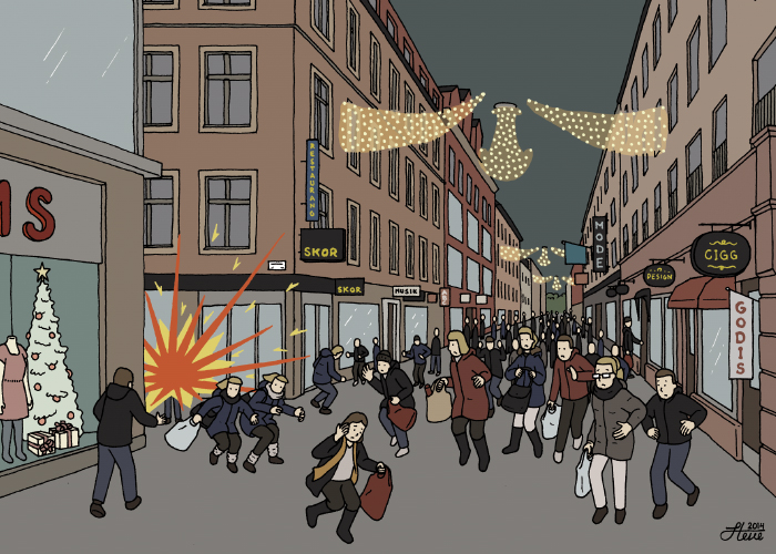”Varför har jag aldrig hört talas om det här?”, tänkte jag när jag först hörde talas om det. Så jag bestämde mig för att göra en serie om händelserna till Trygga lilla Sverige. Det har blivit den serie jag lagt allra mest tid på för det har varit väldigt svårt att hitta någon information om dåden. Här och där har de omnämnts men det finns få djupgående texter om det hela, och särskilt inte om gärningsmannen. De övriga händelserna som jag gjort serier om har det skrivits någon bok eller åtminstone artikel om men kring Sabbatssabotören har det varit helt tyst. Så jag har till största delen gjort min research i rättegångsprotokollen från 1947, vilka är hundratals sidor eftersom varje enskilt bombdåd utreddes var för sig med vittnesmål, skaderapporter och psykologiska utredningar. Ett stort jobb alltså. Men väldigt intressant.